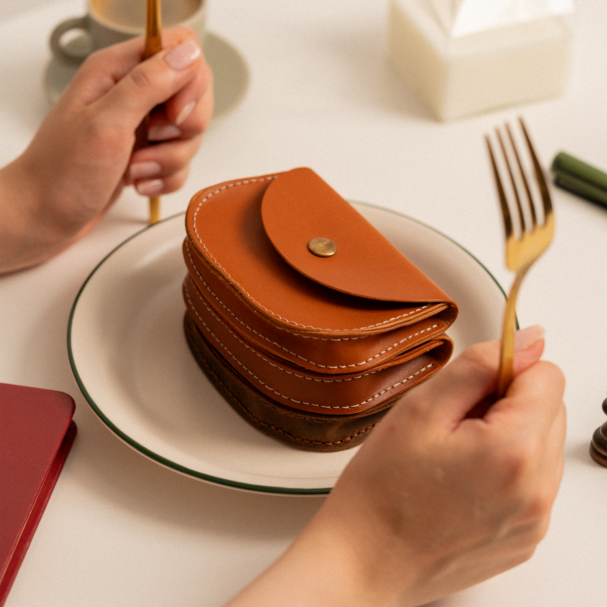 Antik dönemlerdeki altın keselerinin yorumlanması ile oluşturulan bu deri cüzdan ile çok sayıda kart, para hatta anahtar gibi eşyalar özgürce taşınabilir.
